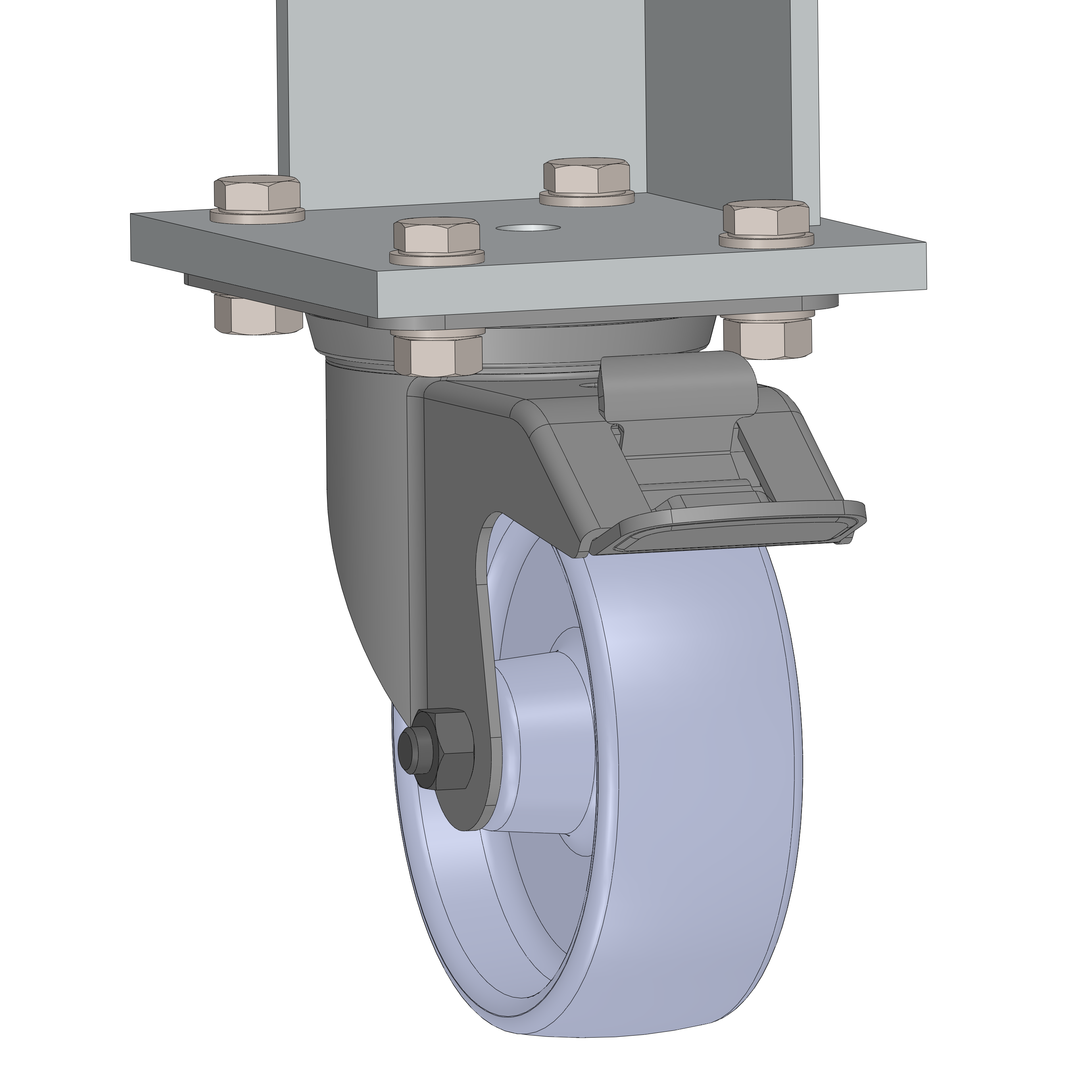 Mit diesem Feature wird der Container auf Rollen ausgeliefert. Montiert werden 2x Bockrolle an der Rückseite und 2x Lenkrolle mit Feststeller an der Vorderseite. Die Rollen haben einen Durchmesser von 100mm.